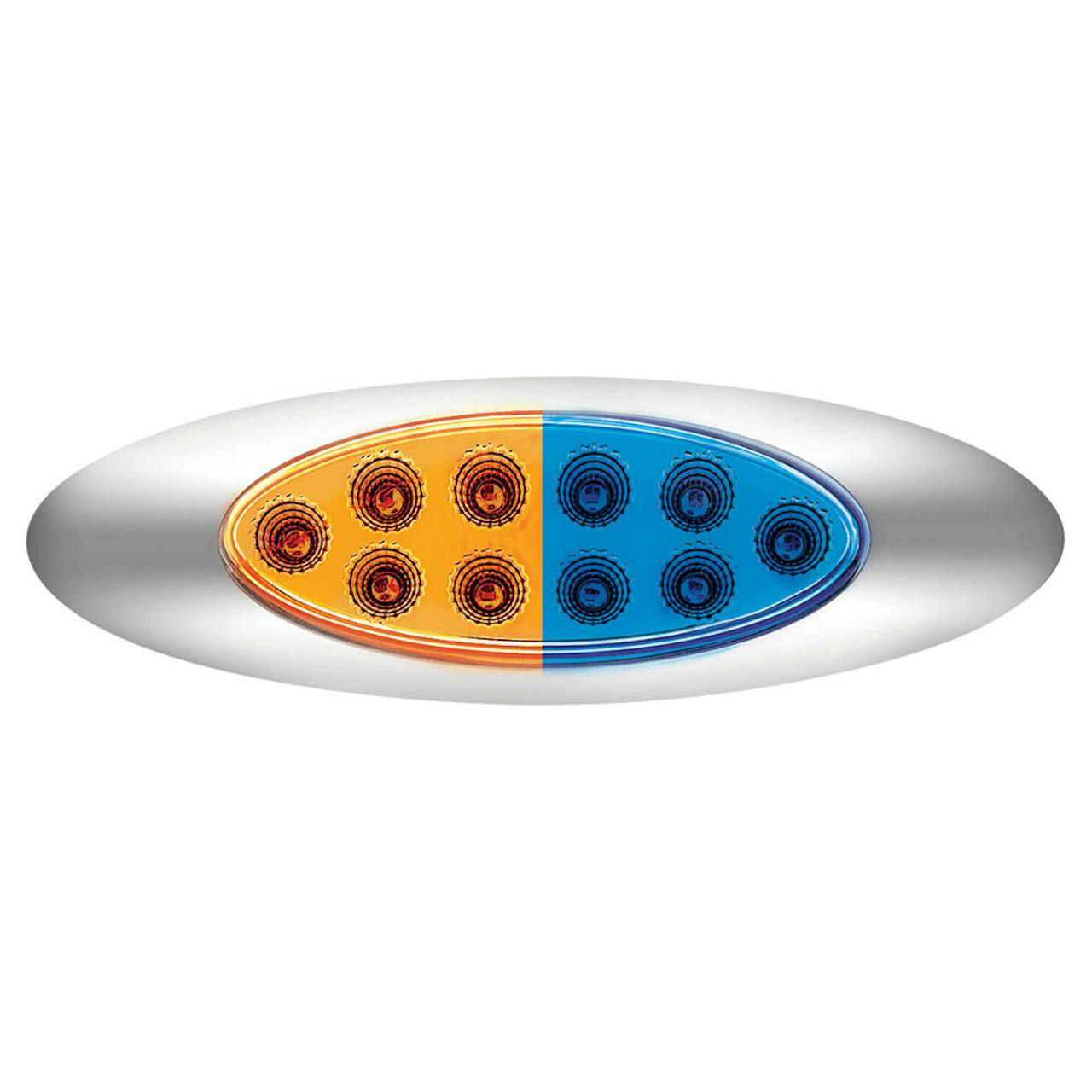 The Double Fury 10 LED clearance marker light combines style and functionality with its dual-color design and 10 bright LEDs. Available in a variety of color options, like amber and blue or amber and red, this light is built to last with a clear polycarbonate lens sealed to prevent moisture, and a sleek chrome-plated bezel that hides the included mounting screws. Measuring 6-5/8" long, it features easy 12V, 3-wire hookup and the secondary color takes over when activated. The amber LED meets DOT/SAE FMVSS 108 standards, while the secondary color is perfect for off-road use. It’s IP67 water-resistant and sold individually.