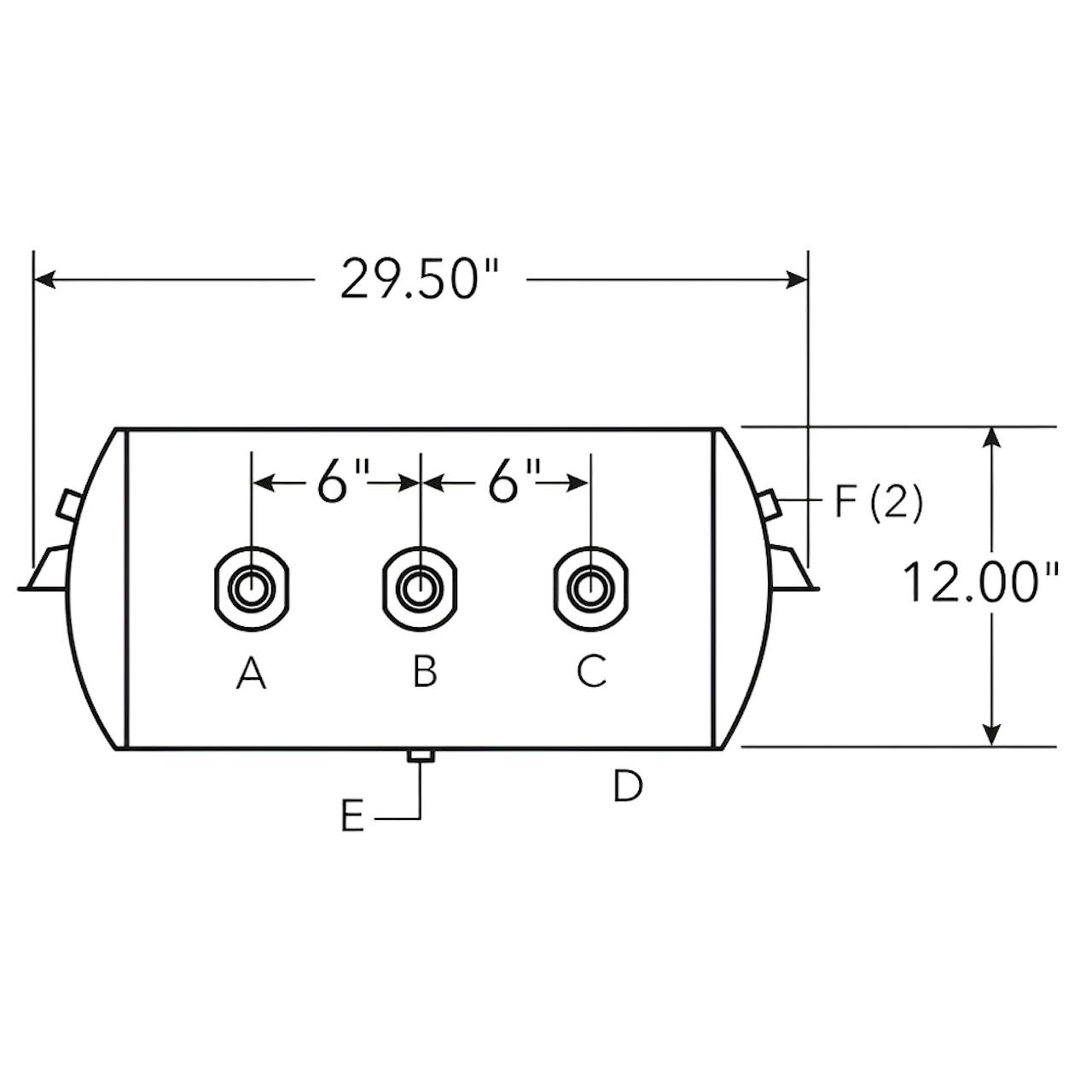 Upgrade your air system with this high-performance replacement air tank, featuring a 2820 cubic inch capacity and universal fitment. Built from durable black-coated steel, it resists corrosion with 240 hours of salt spray protection and meets ASTM B117 standards. Designed with (4) 3/4" main ports, (2) 3/8" end ports, and a 1/4" drain port, it ensures seamless air distribution. Compatible with Tramec Sloan drain valves for enhanced functionality, this tank meets DOT and SAE standards. Made in the USA, it’s a reliable, long-lasting solution for your air system needs.