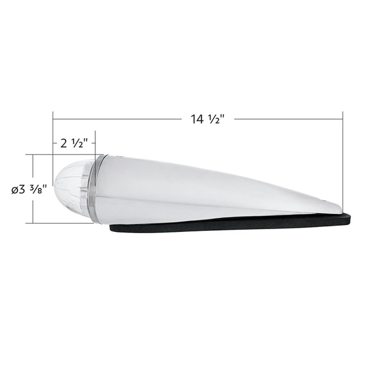 Upgrade your truck’s lighting with the Dual Color LED Torpedo Cab Light, featuring 17 bright LEDs in sleek, chrome-plated plastic housing for enhanced visibility. Choose from vibrant color combinations like amber & blue or amber & green, to suit your style. The high-quality, injection-molded polycarbonate lens ensures durability, while the fully sealed 12V DC electronics resist moisture and corrosion. Designed for easy installation with pre-assembled wiring and overmolded male bullet plugs, this cab light is IP67 water-resistant and DOT/SAE compliant for long-lasting, reliable performance.