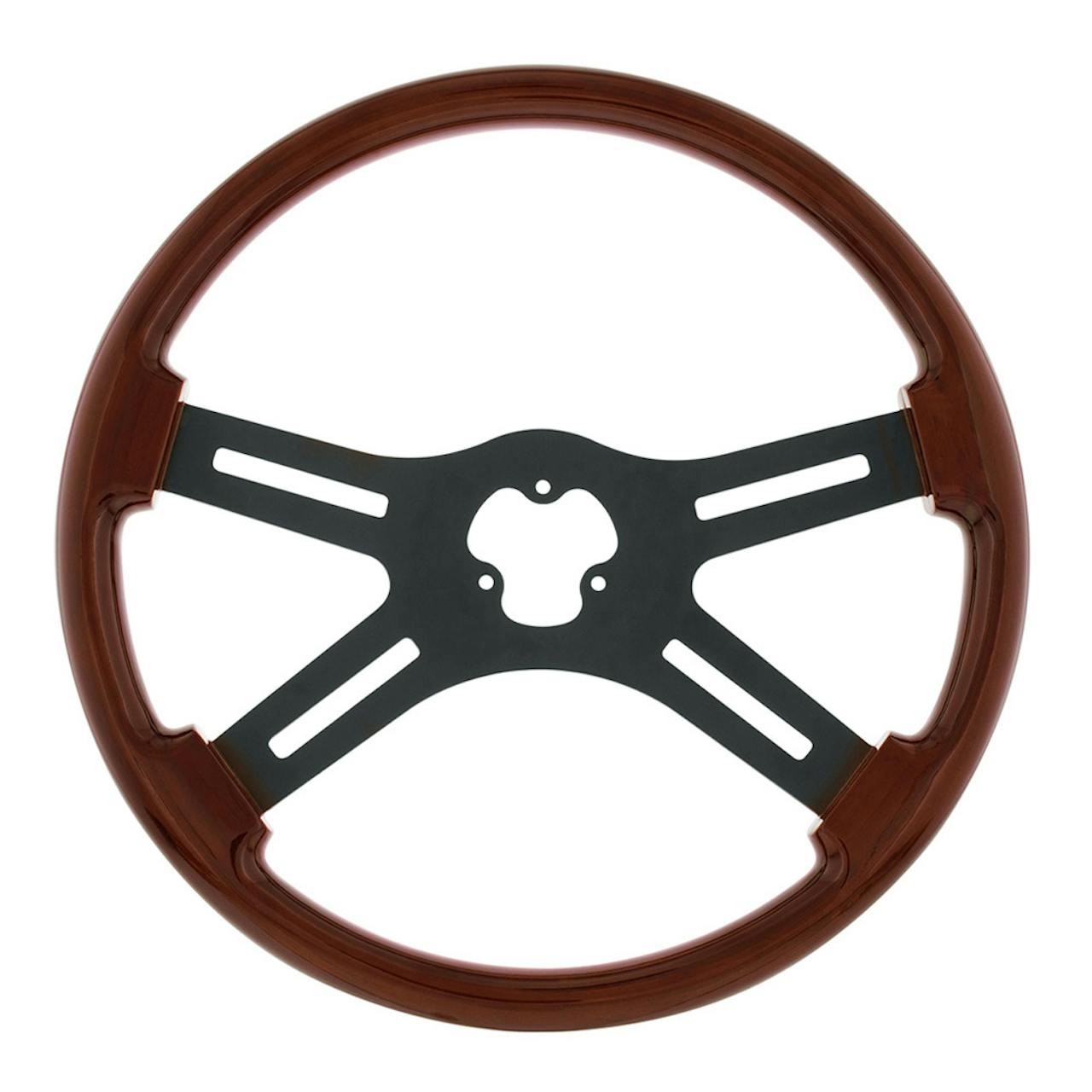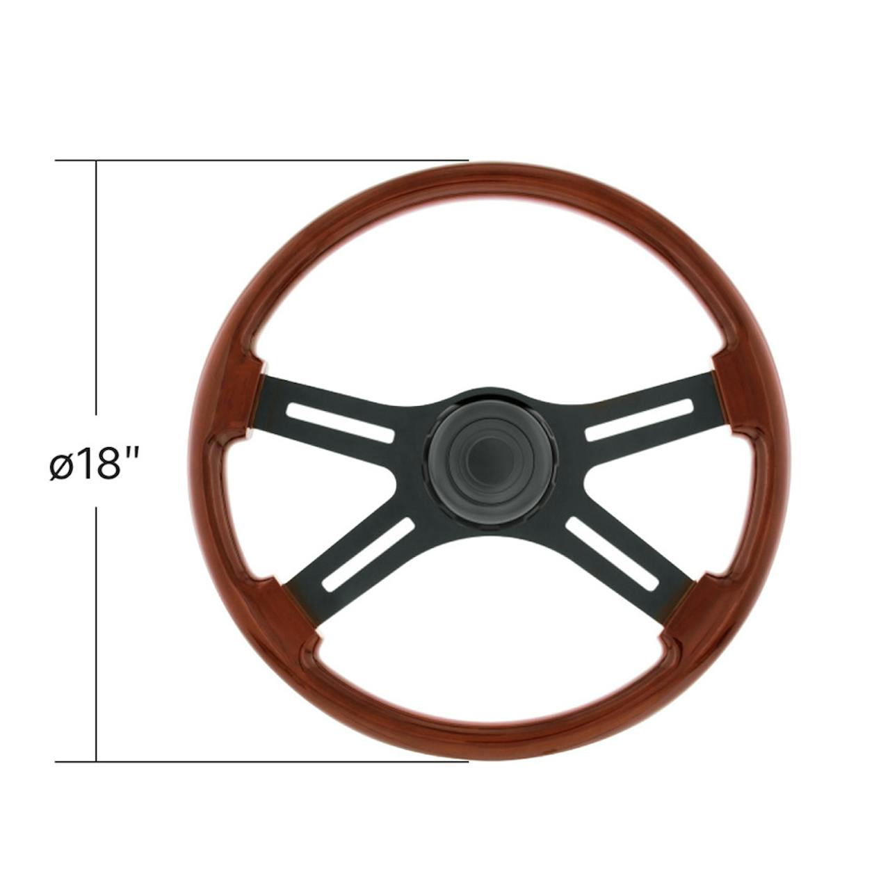 - 18" Matte Black 4 Spoke Steering Wheel With Wood Grain