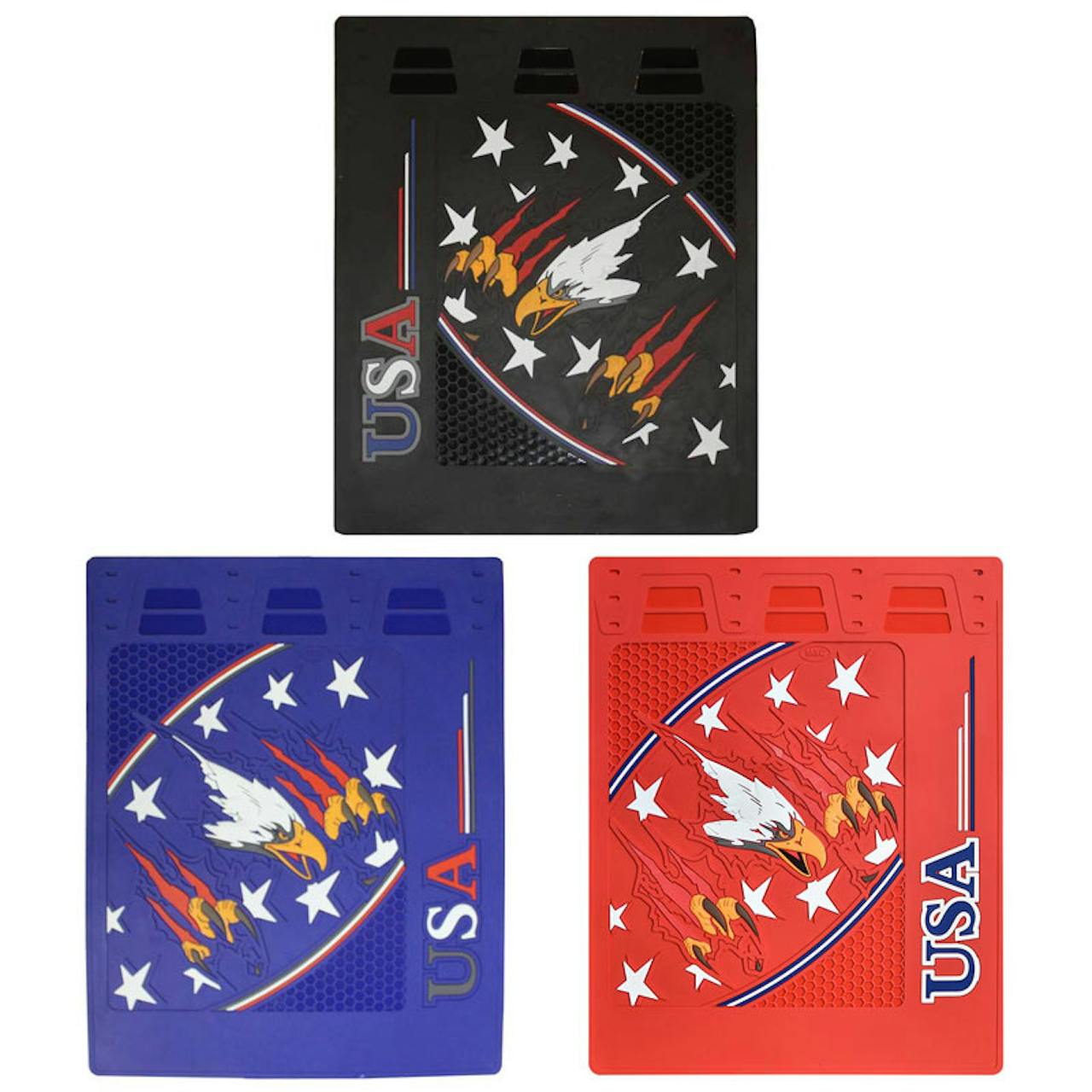 The USA Flying Eagle Mud Flaps have a multi-color design featuring a patriotic USA flying eagle making them top notch custom mud flaps. This mudguard comes with heat distortion resistance so you never have to worry about fading or warping, and constant spending on new flaps especially with the 1/4" thickness, and semi-flexible rubber.