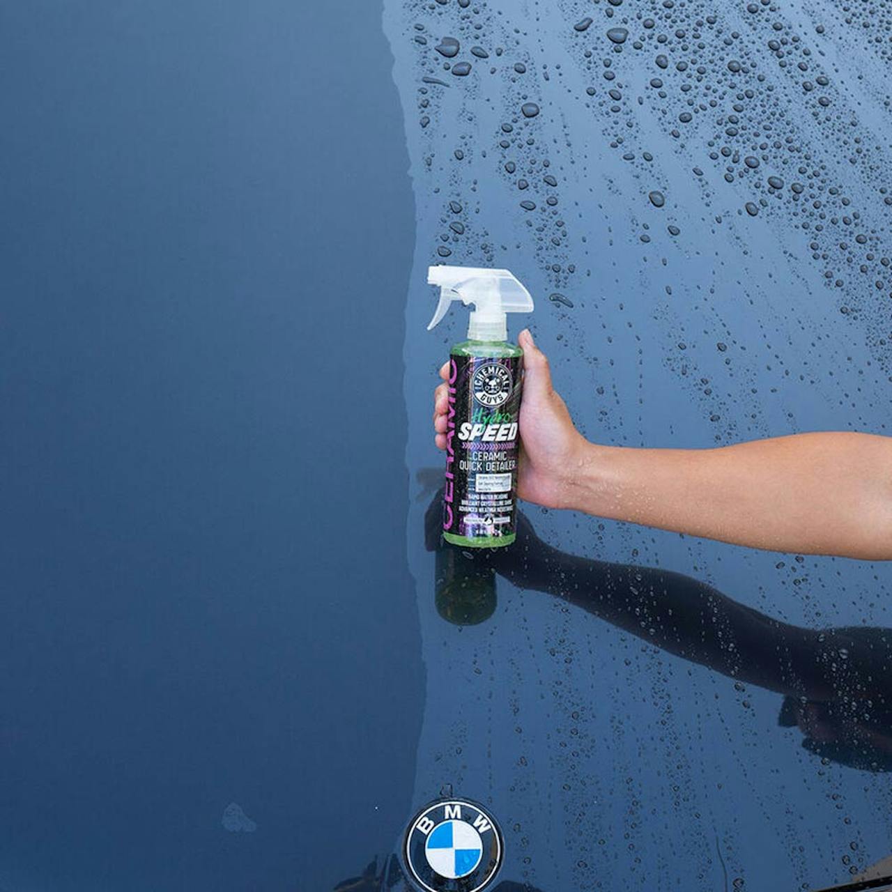 Featuring special hydrophobic polymers and nanoparticles of Si02, Chemical Guys HydroSpeed Ceramic Quick Detailer delivers durable all-weather protection and intense water beading to help maintain that brilliant show car shine. Apply within seconds with no extensive surface prep and enjoy easier car washes, self-cleaning properties and protection again UV rays and contaminants.