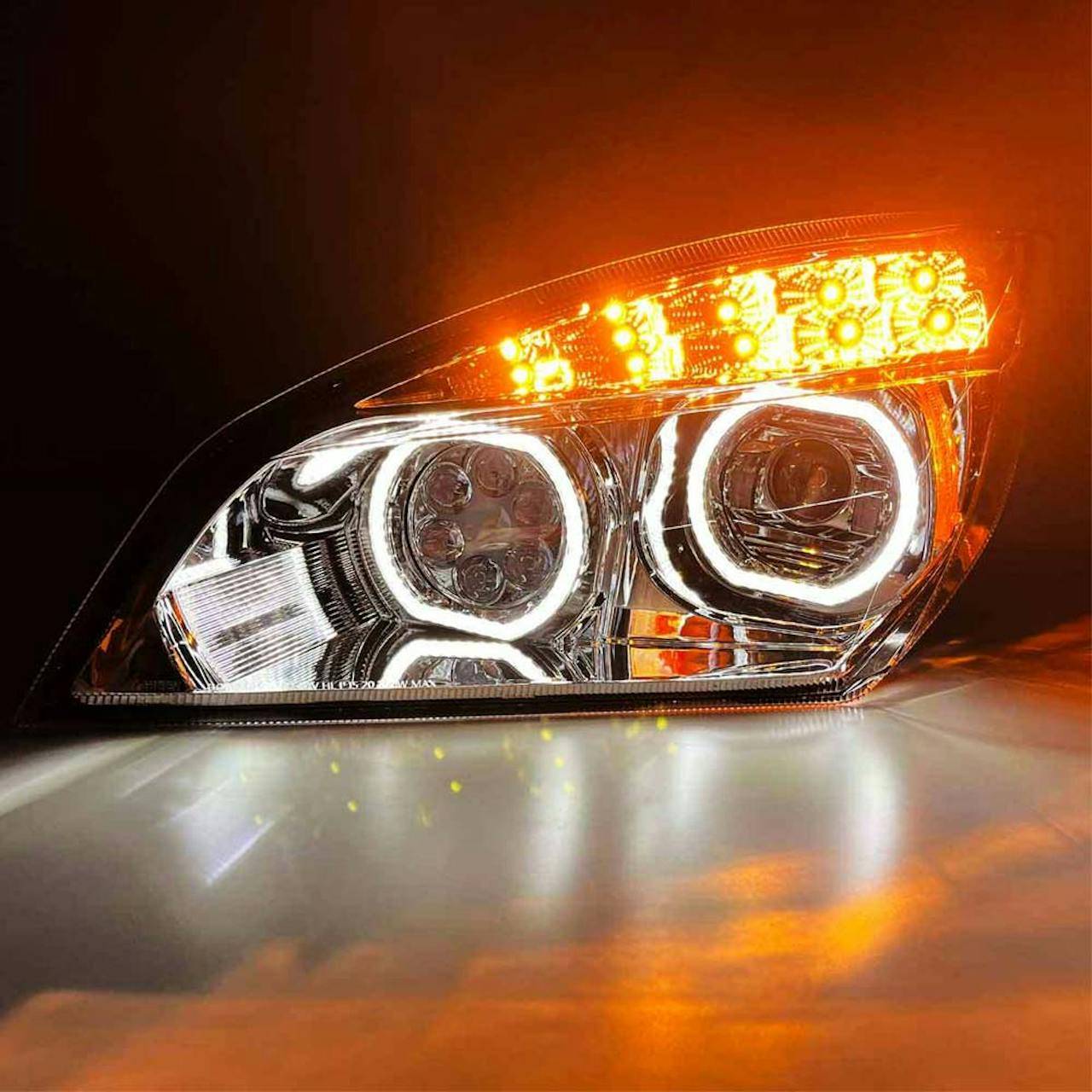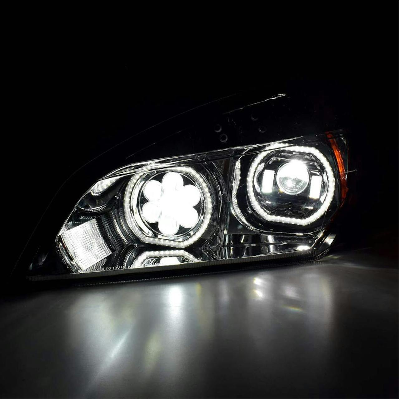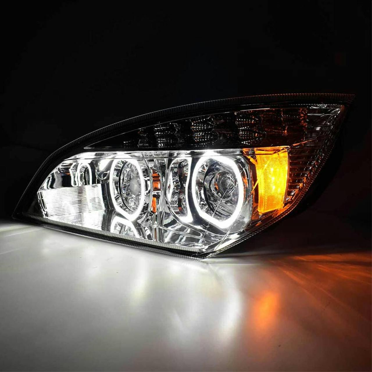 - Freightliner Cascadia 2018+ Chrome Full LED Projection Headlight With DRL Halo Rings