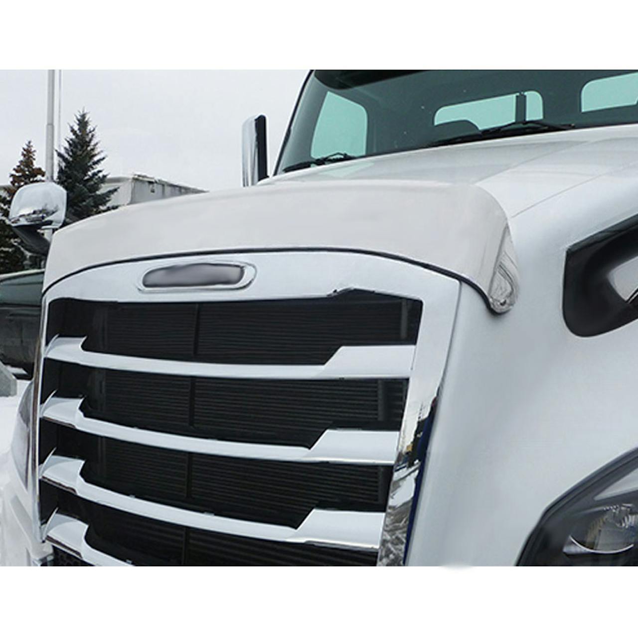 Shield your Freightliner Cascadia from debris with this premium stainless steel bug deflector. Stylish, durable, and features a grab handle for easy hood tilting.