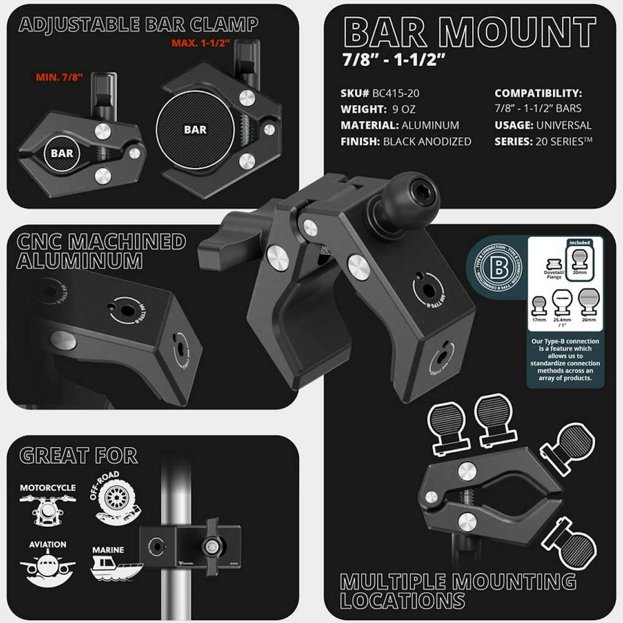 - Ball & Socket System: 20 Series (20mm Metal Ball)