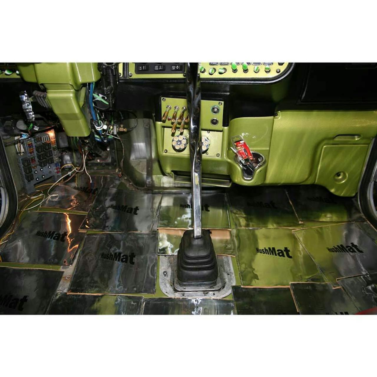 The Hushmat also acts as thermal insulation, reducing thermal transfer into your truck's interior from your engine, exhaust, and sunlight. When your truck is running, it can generate over 200°F of heat that cooks your firewall and floor pan. That means your engine, headers, manifold, & exhaust produce a tremendous amount of heat that transfers through the firewall and floor pan. This heat also causes your A/C to work harder to maintain cool temperatures inside your cab. Hushmat solves this problem by using USA manufactured visco-elastic chemistry which dissipates the heat insulating your interior, allowing your AC to function more efficiently and making your truck considerably cooler. In an independent study, Hushmat was proven to lower the temperature in your cab by over 40%.