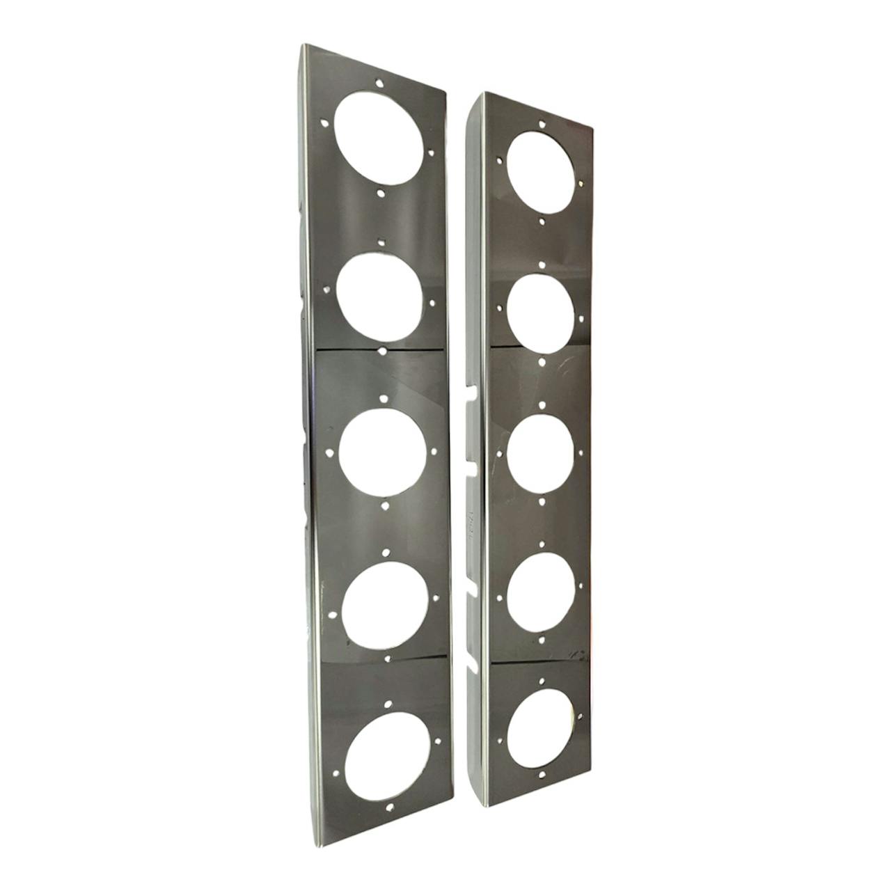 Stainless steel square style brackets for Peterbilt 15 inch air cleaners with 5 watermelon light holes. Easy no-drill install. Fits 1156, 1157, 3157 bulbs. Sold in pairs. Bulbs sold separately.