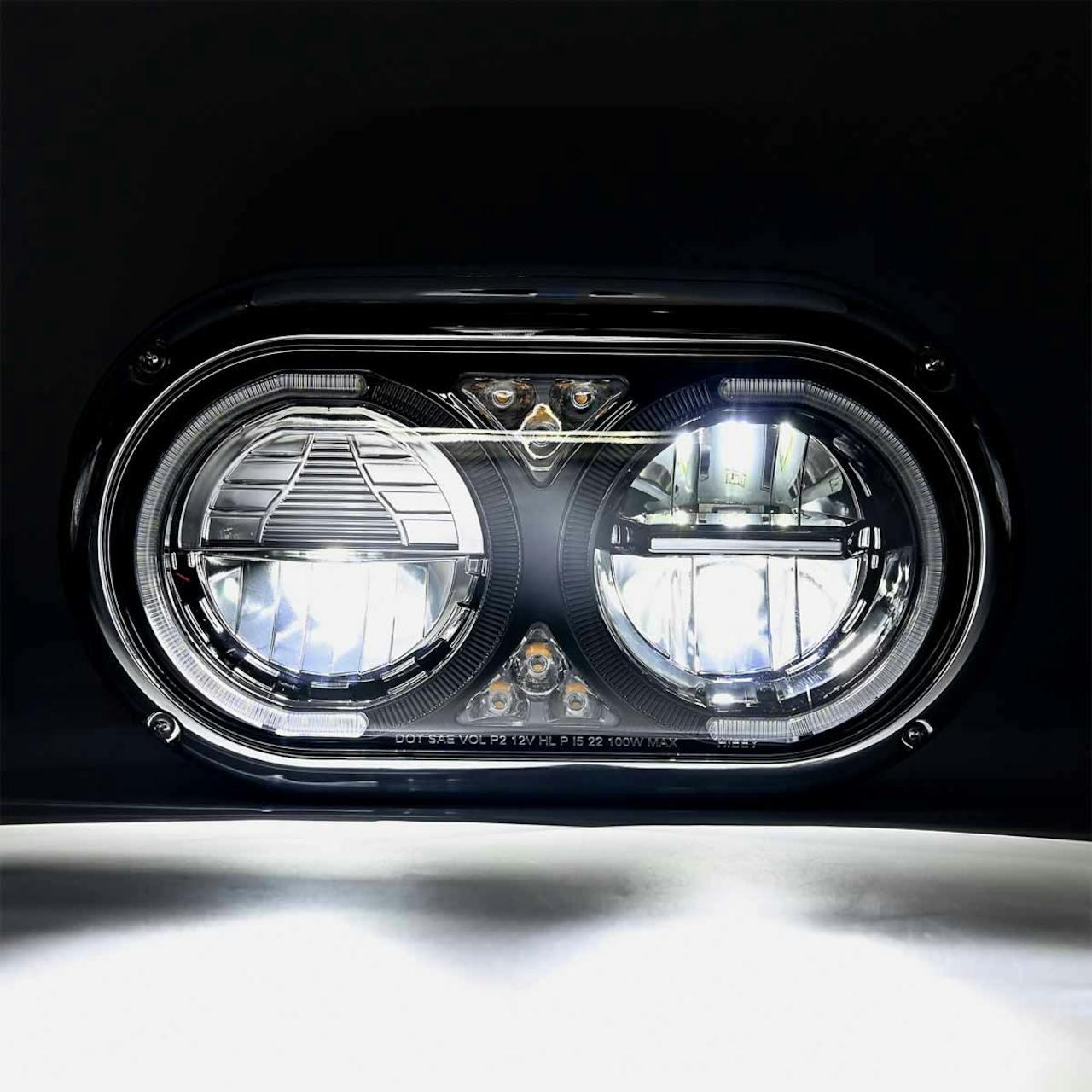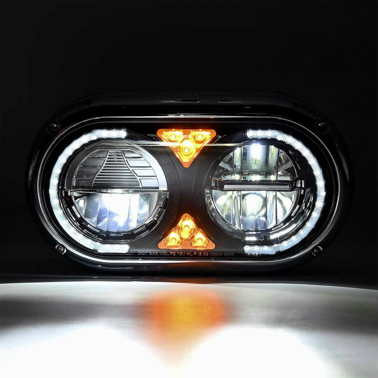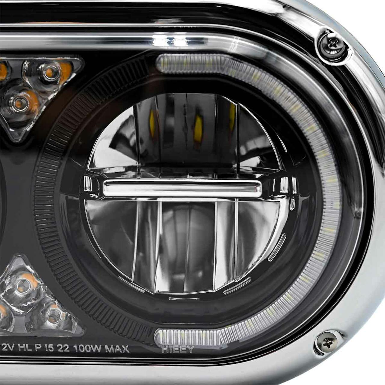 - Peterbilt 359 Style Blackout Dual Round Halo Full LED Guide Style Headlight Assembly