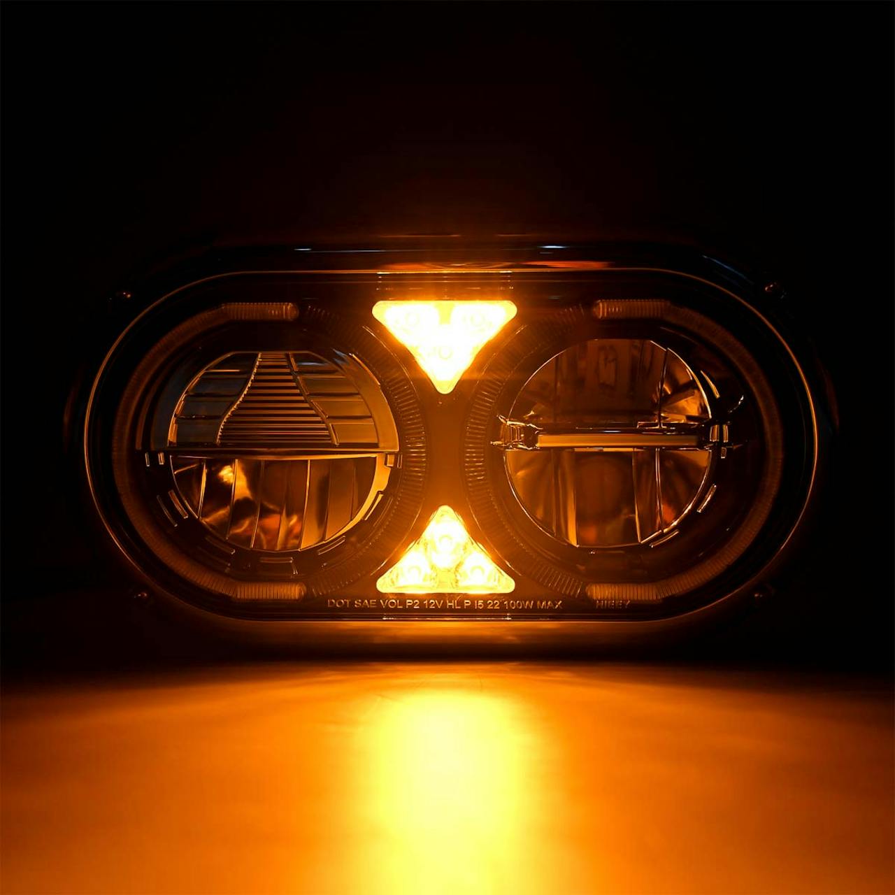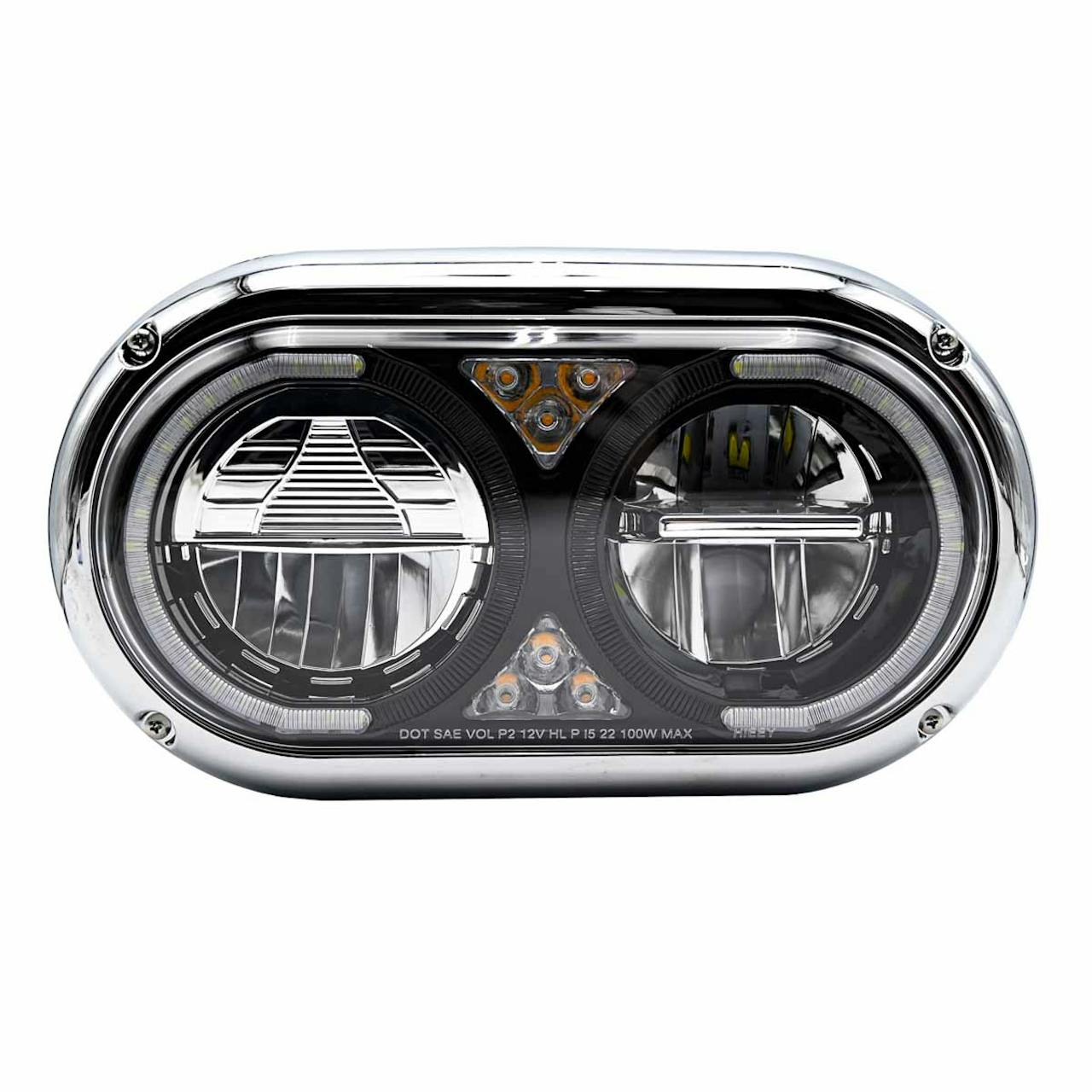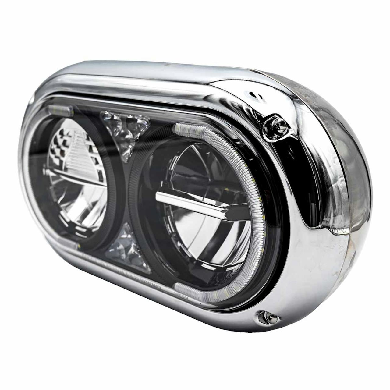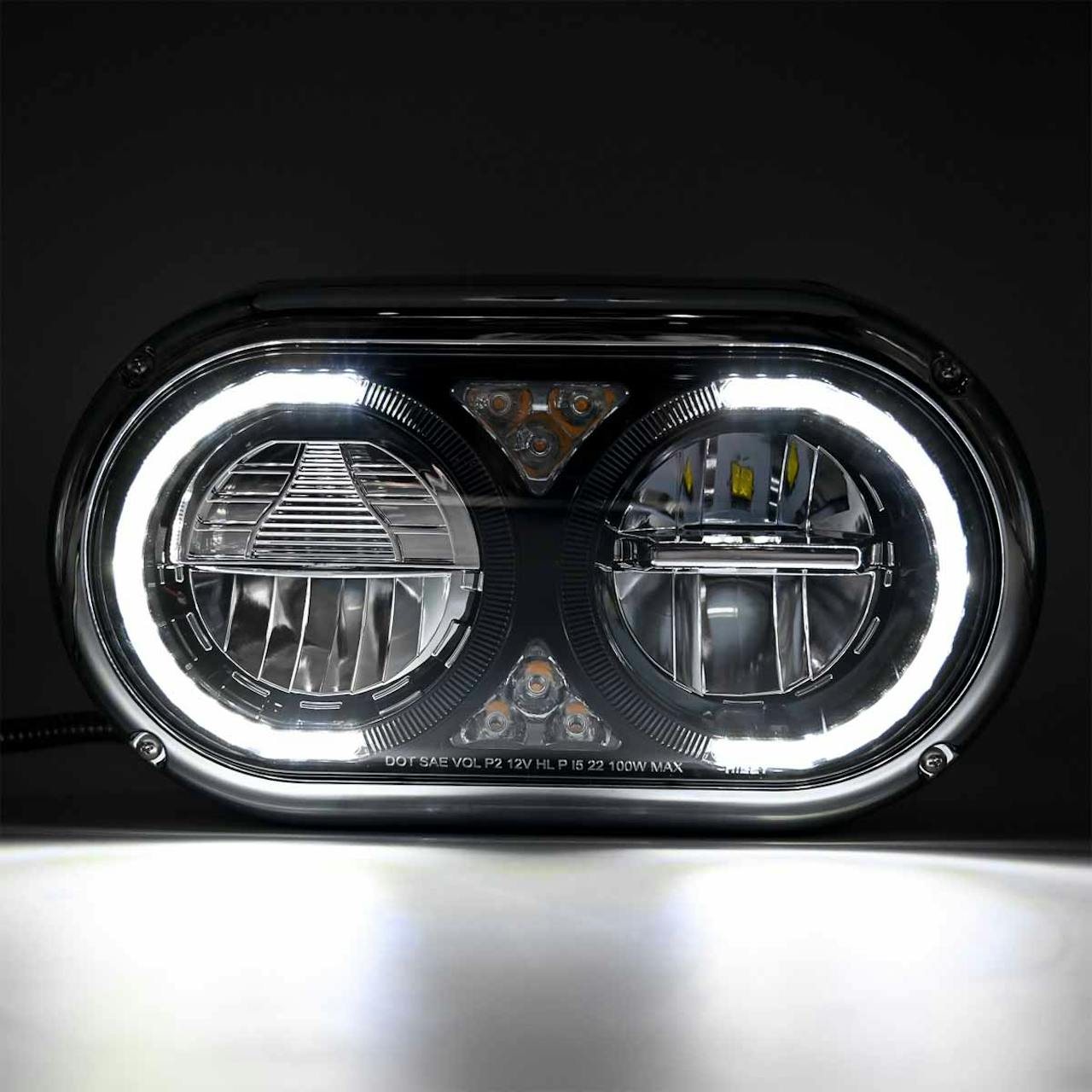 - Peterbilt 359 Style Blackout Dual Round Halo Full LED Guide Style Headlight Assembly