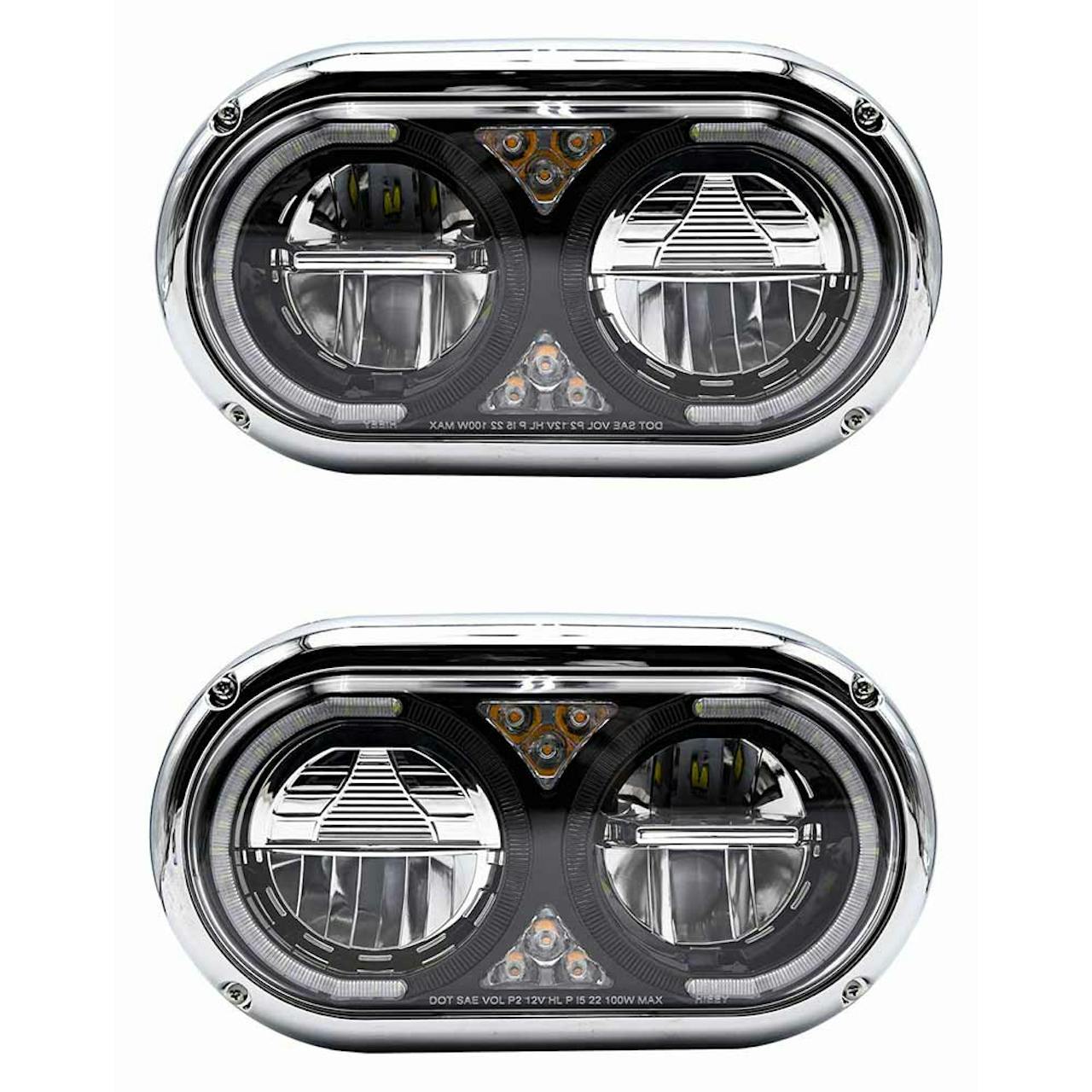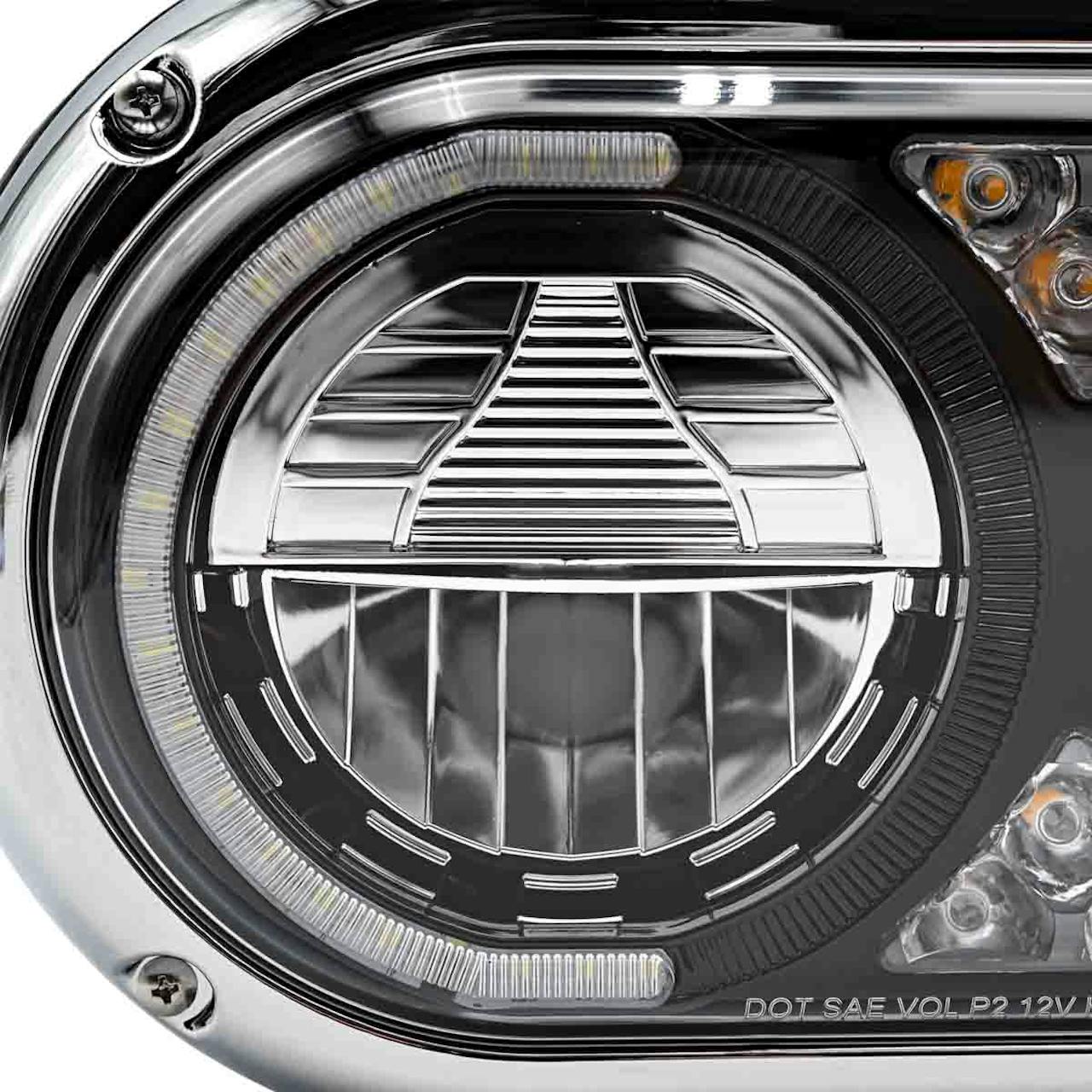 Peterbilt 359 Style Blackout Dual Round Halo Full LED Guide Style Headlight Assembly