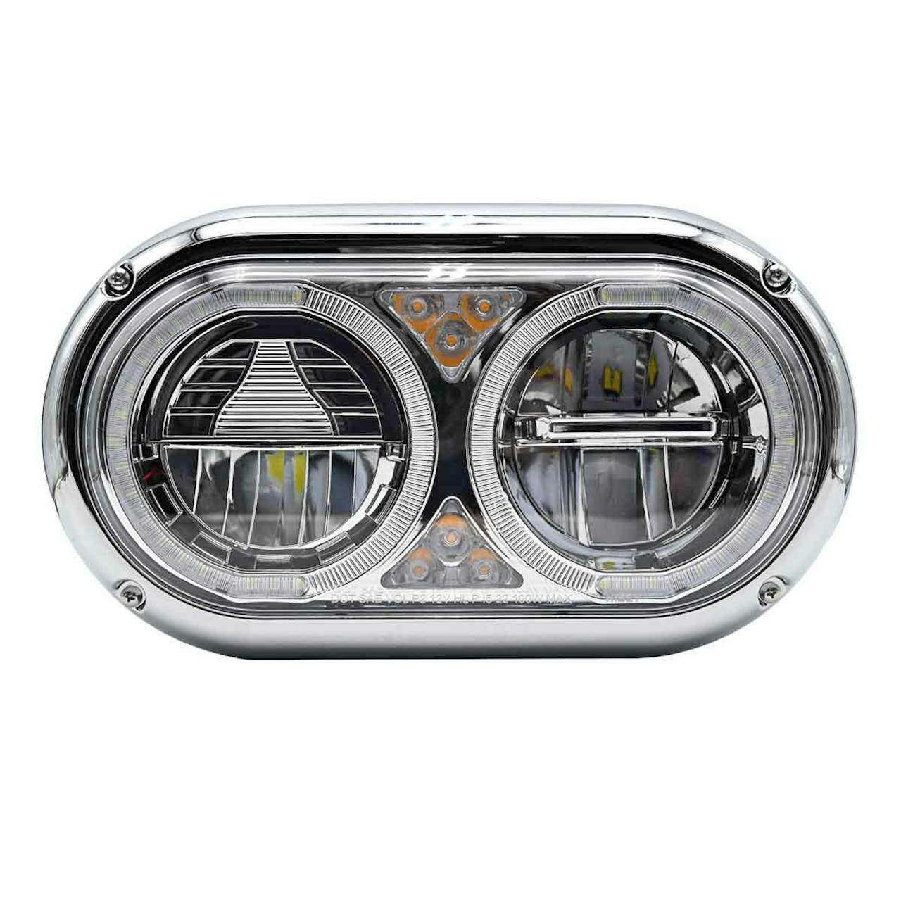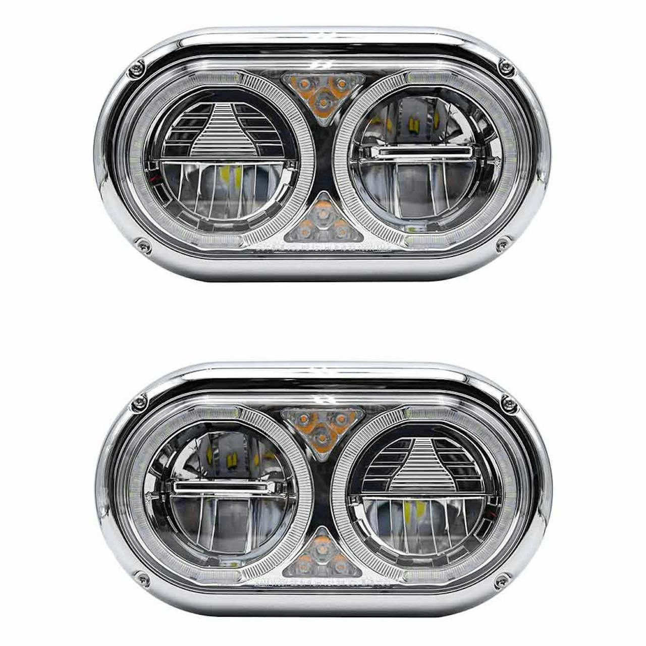 Peterbilt 359 Style Chrome Dual Round Halo Full LED Guide Style Headlight Assembly