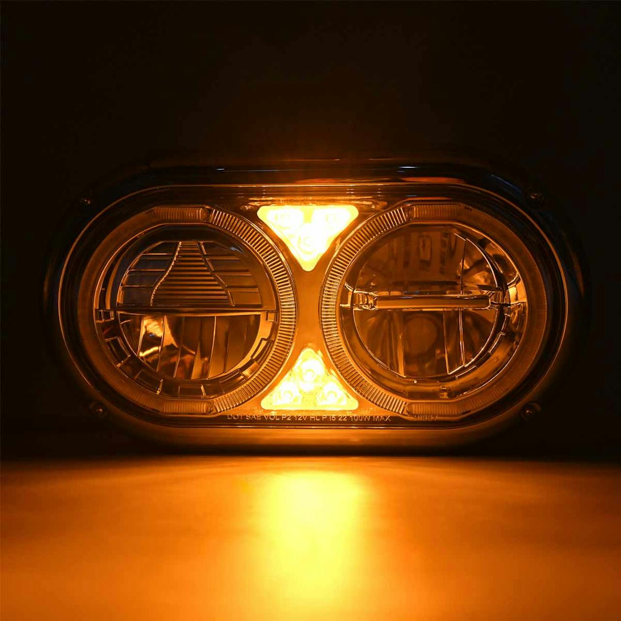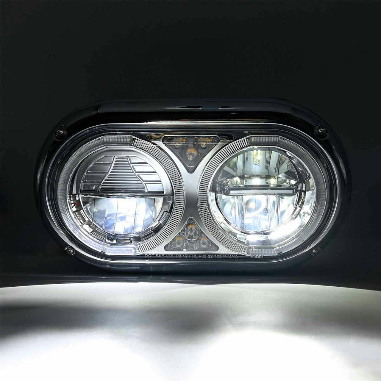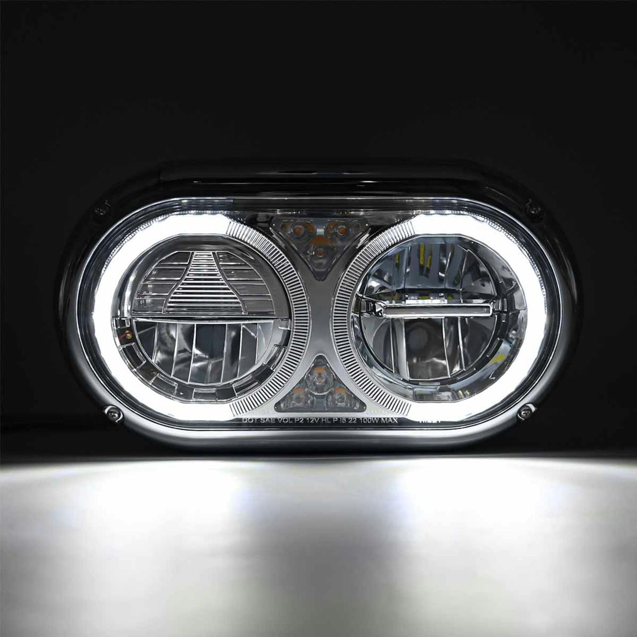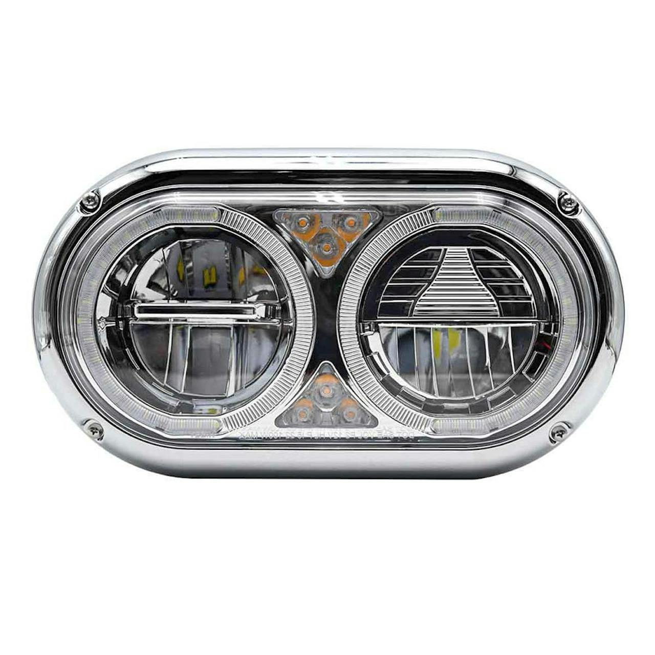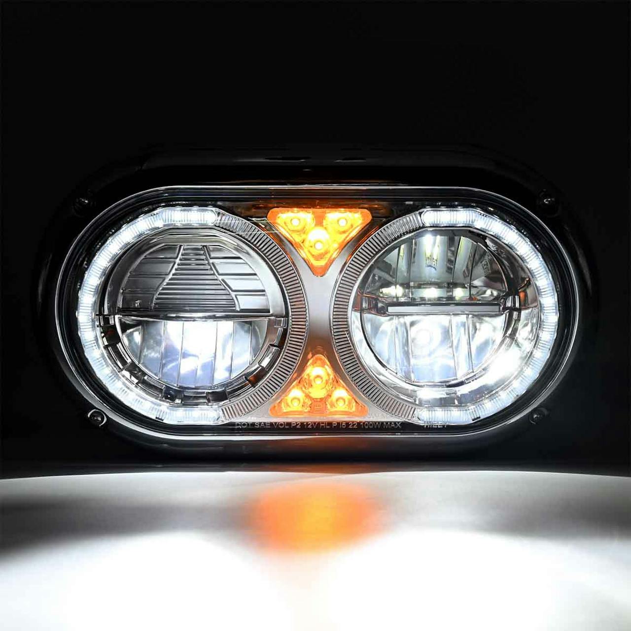- Peterbilt 359 Style Chrome Dual Round Halo Full LED Guide Style Headlight Assembly