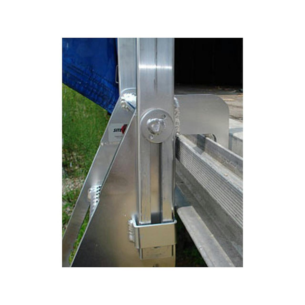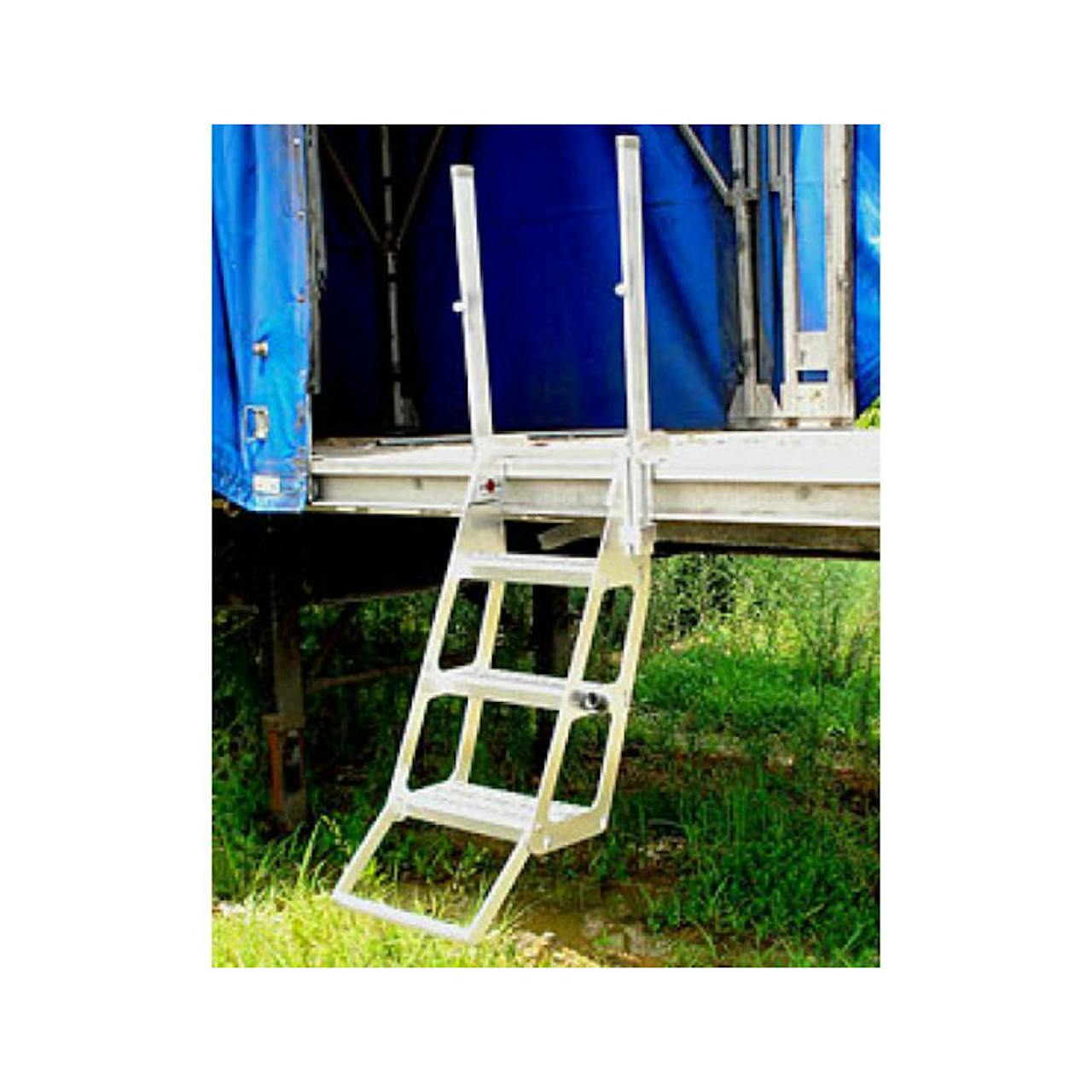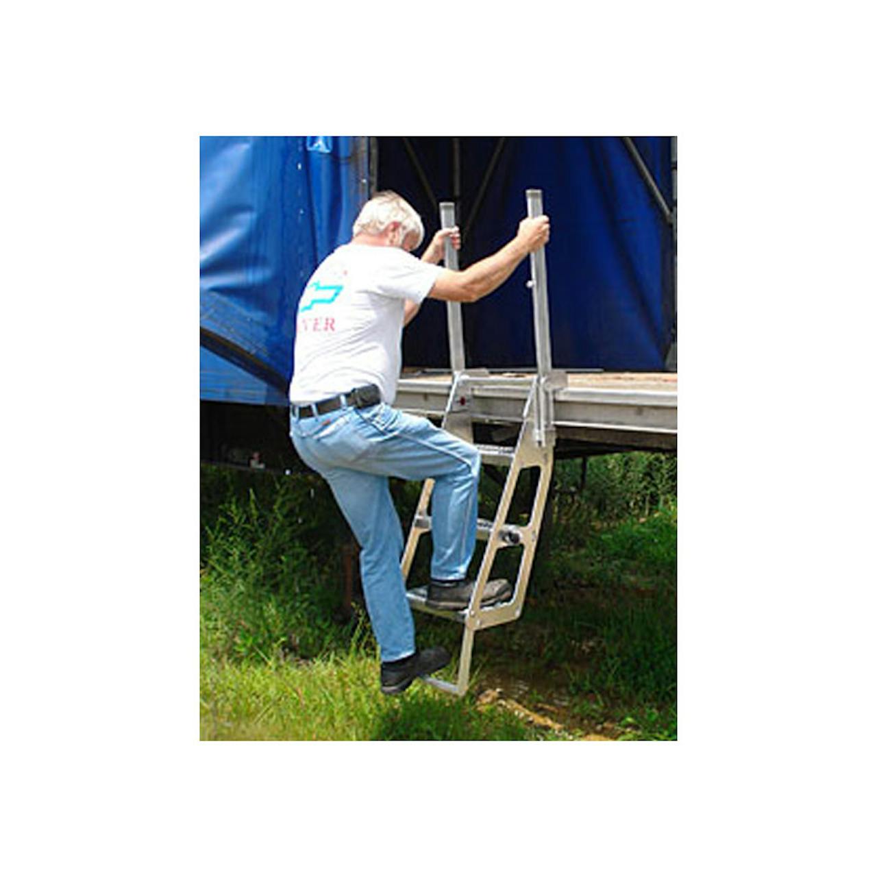 Being similar to the Trucker I Ladder, the Roll Tarp Ladder is equipped with specially designed aluminum hooks to allow attachment to curtain vans and roll tarp trailers. With three points of contact, a fourth drop down rung and two handrails, the Roll Tarp Ladder is made to provide safe trailer access. Safety-engineered features to help decrease the chance of injury or strain for any truck driver. Ladder can be mounted anywhere in the stake pockets or rub rail.