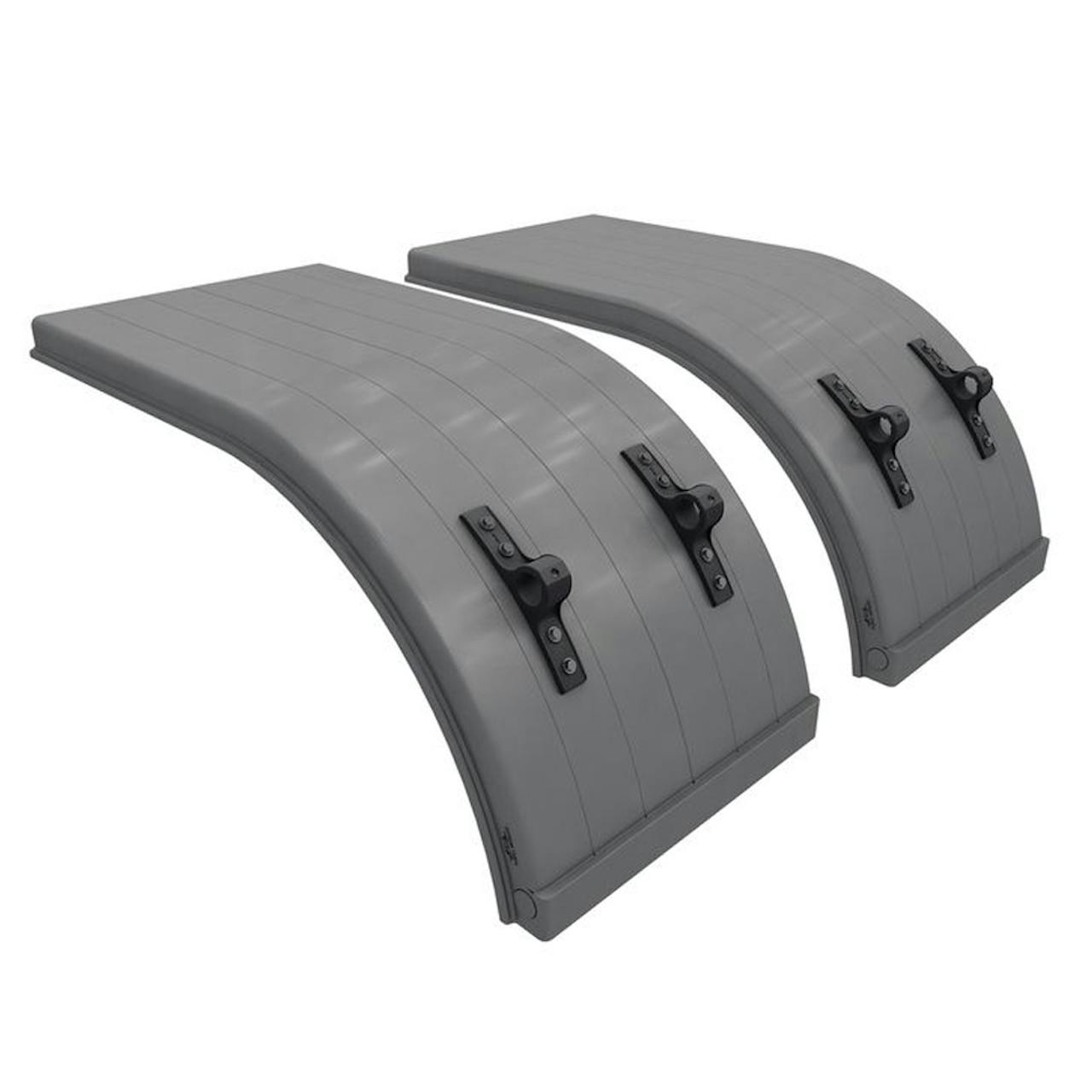 Enhance your truck's protection with Spray Master Half Tandem Fenders, available in black, red, or silver/grey. These fenders are made from durable, injection-molded plastic polymers, offering a virtually indestructible design. With structural underside ribs and side valances, they deliver superior durability and spray suppression, keeping your vehicle cleaner. The lightweight, rust-free material increases cargo capacity and boosts efficiency. Made in the USA and sold as a pair, Spray Master Half Tandem Fenders offer long-lasting performance.