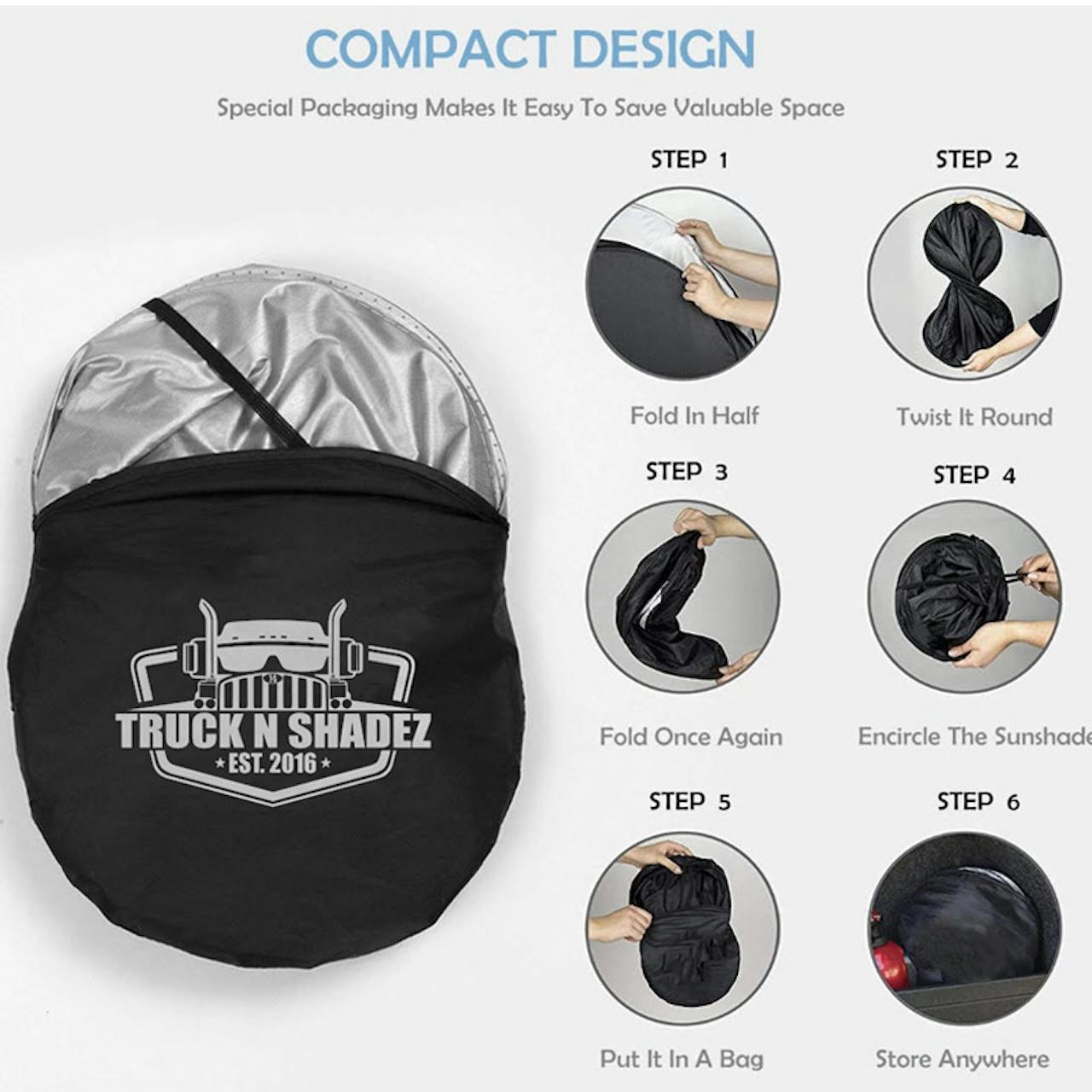 Truck N ShadeZ is engineered to block the sun in any standard pickup truck to any Class 8 tractor while reducing the heat inside. The shade is designed to cover the windshield and both side doors of any truck make, model and year. It can be put in place in less than one minute and can be taken down quickly and stored neatly in the company’s custom poly bag. Truck N ShadeZ are designed by a trucker, for truckers!