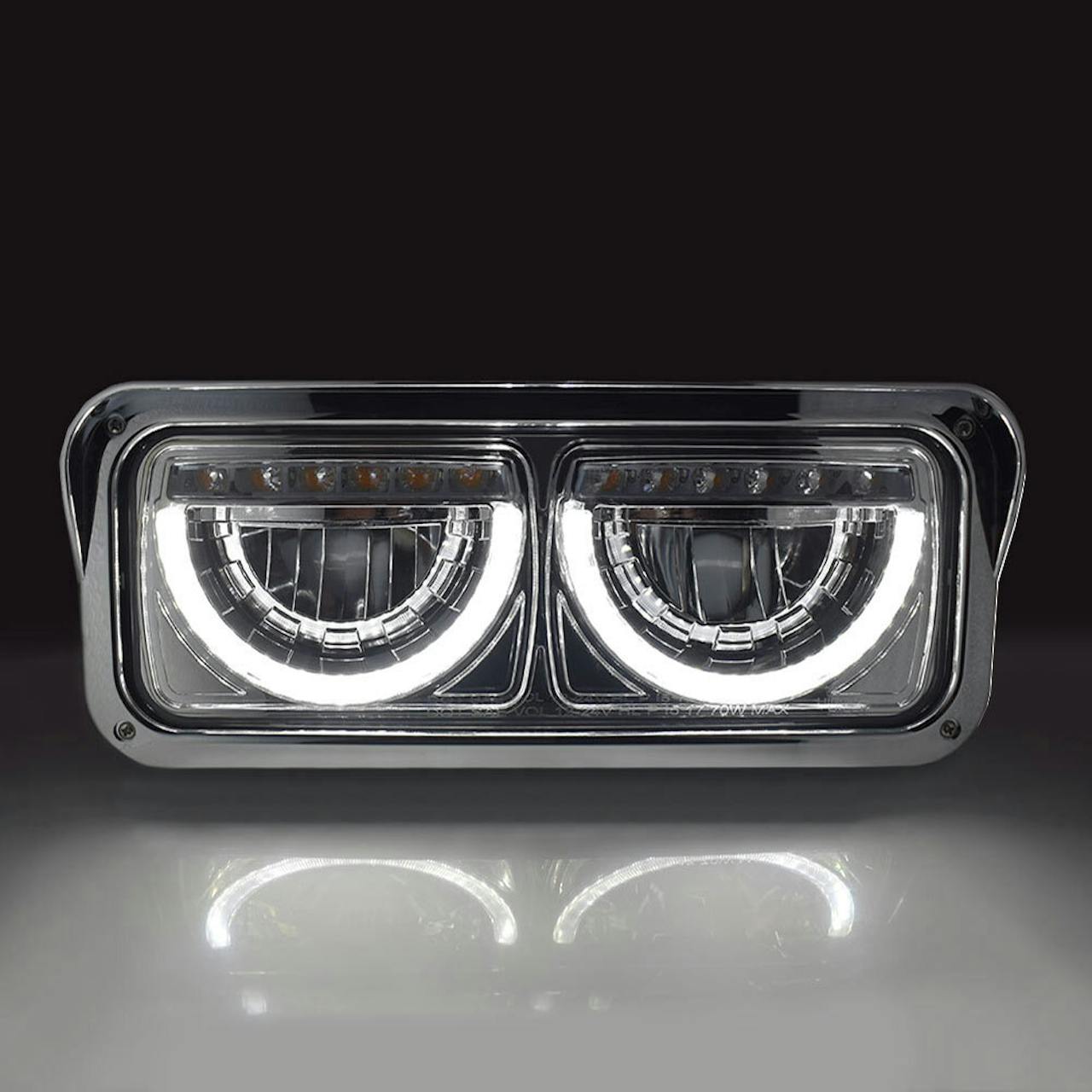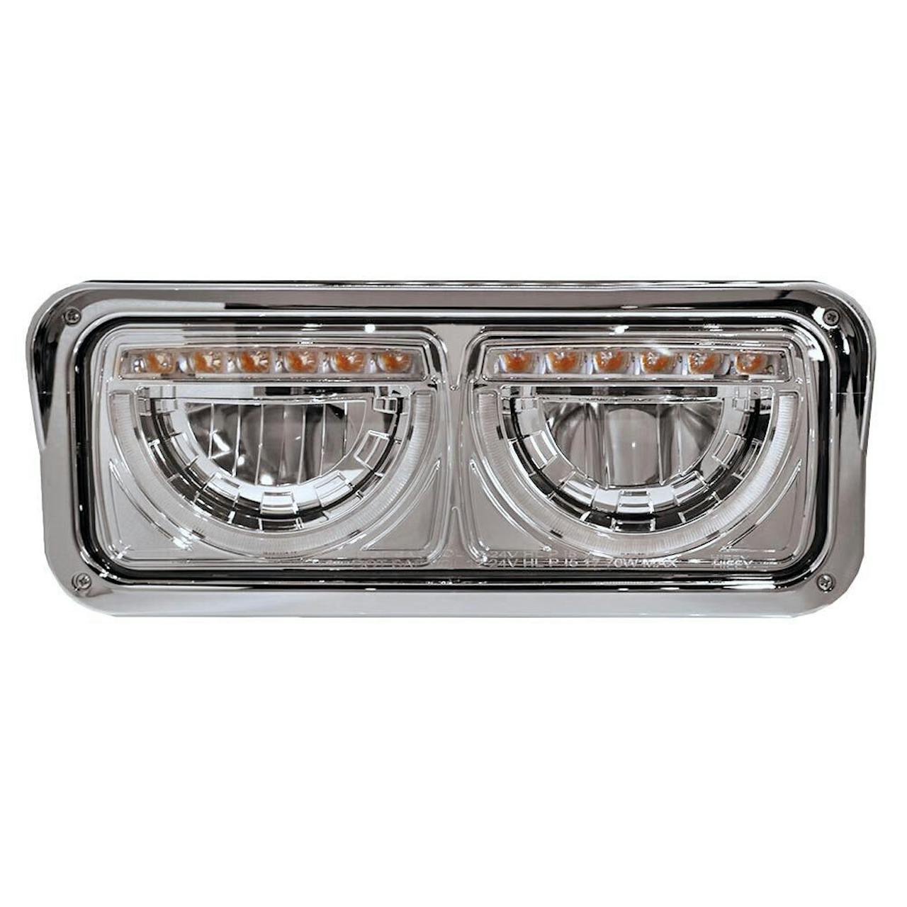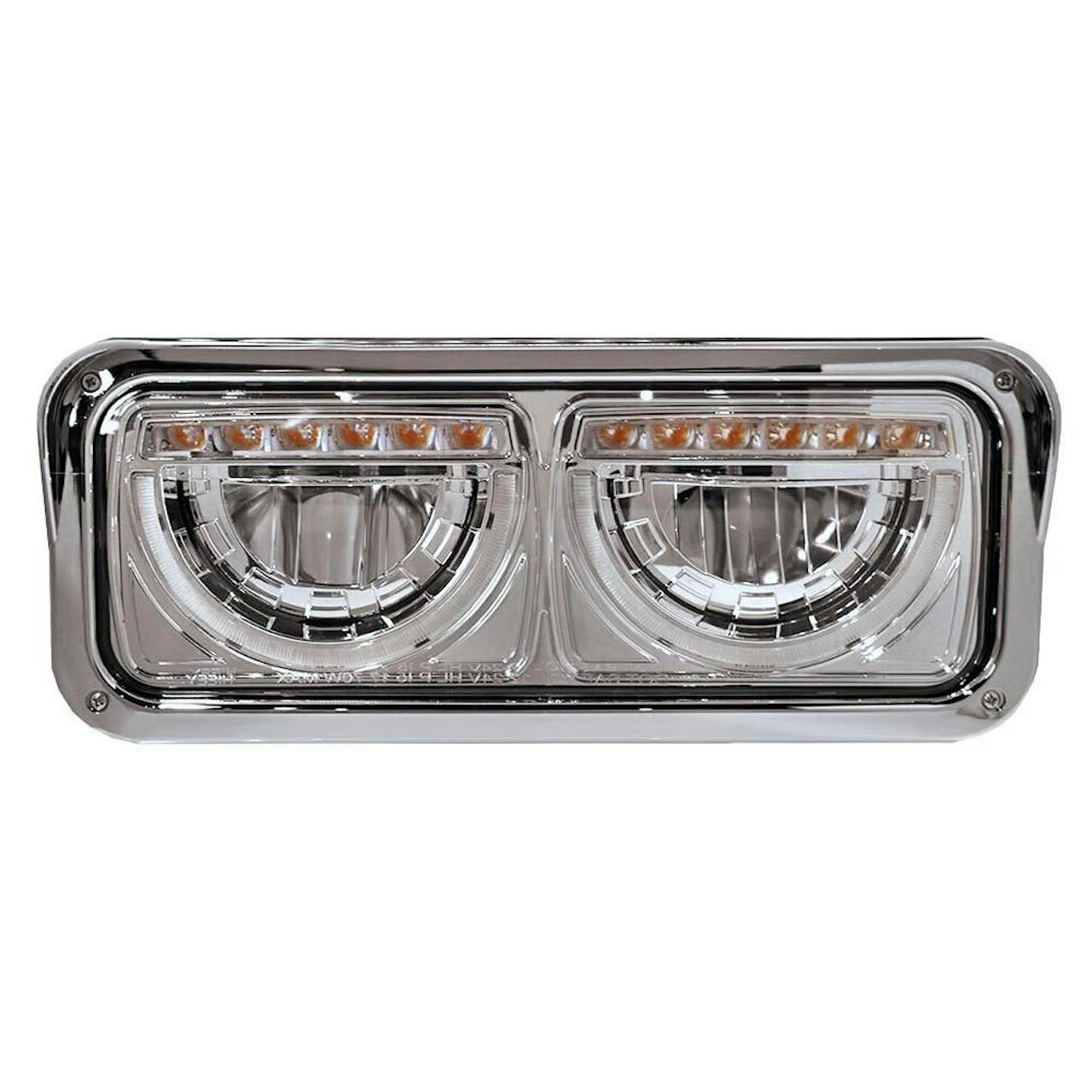 A stylish addition to your Western Star, this chrome half moon headlight features full LED low and high beams with a LED day running light!